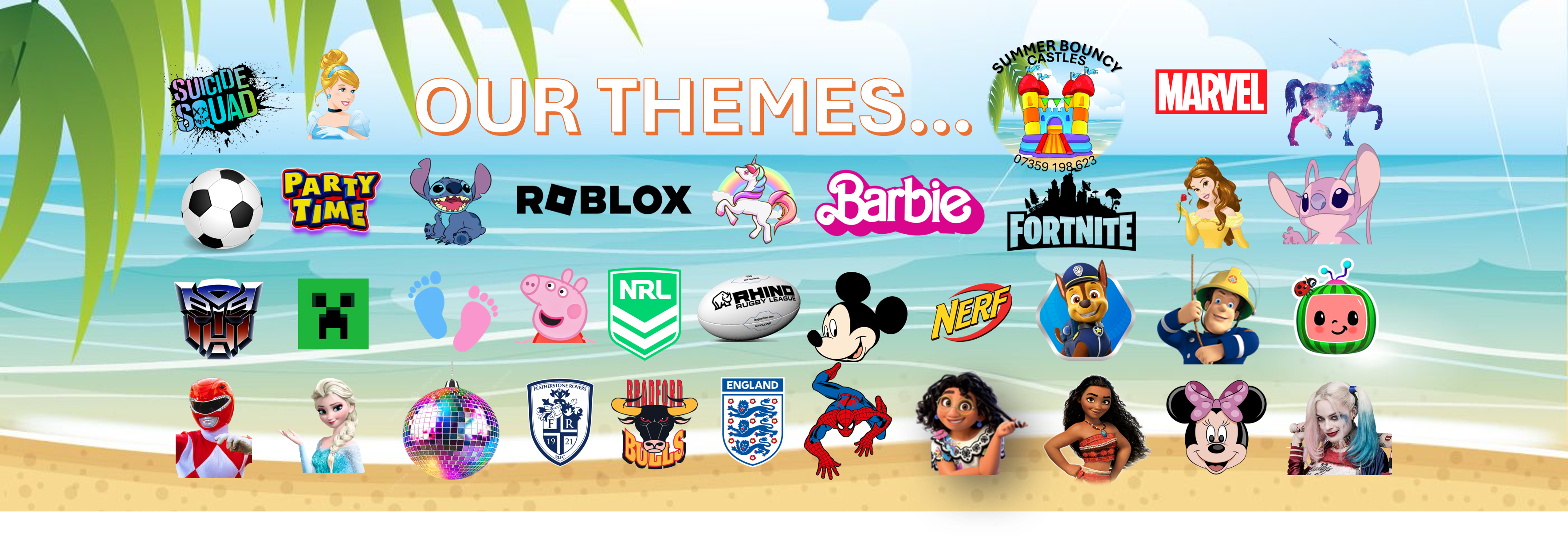 Our theme options really opens up for party’s that are carrying out a theme. We have some of the most popular themes such as Disney, Prime, Paw Patrol, different sports and so much more!